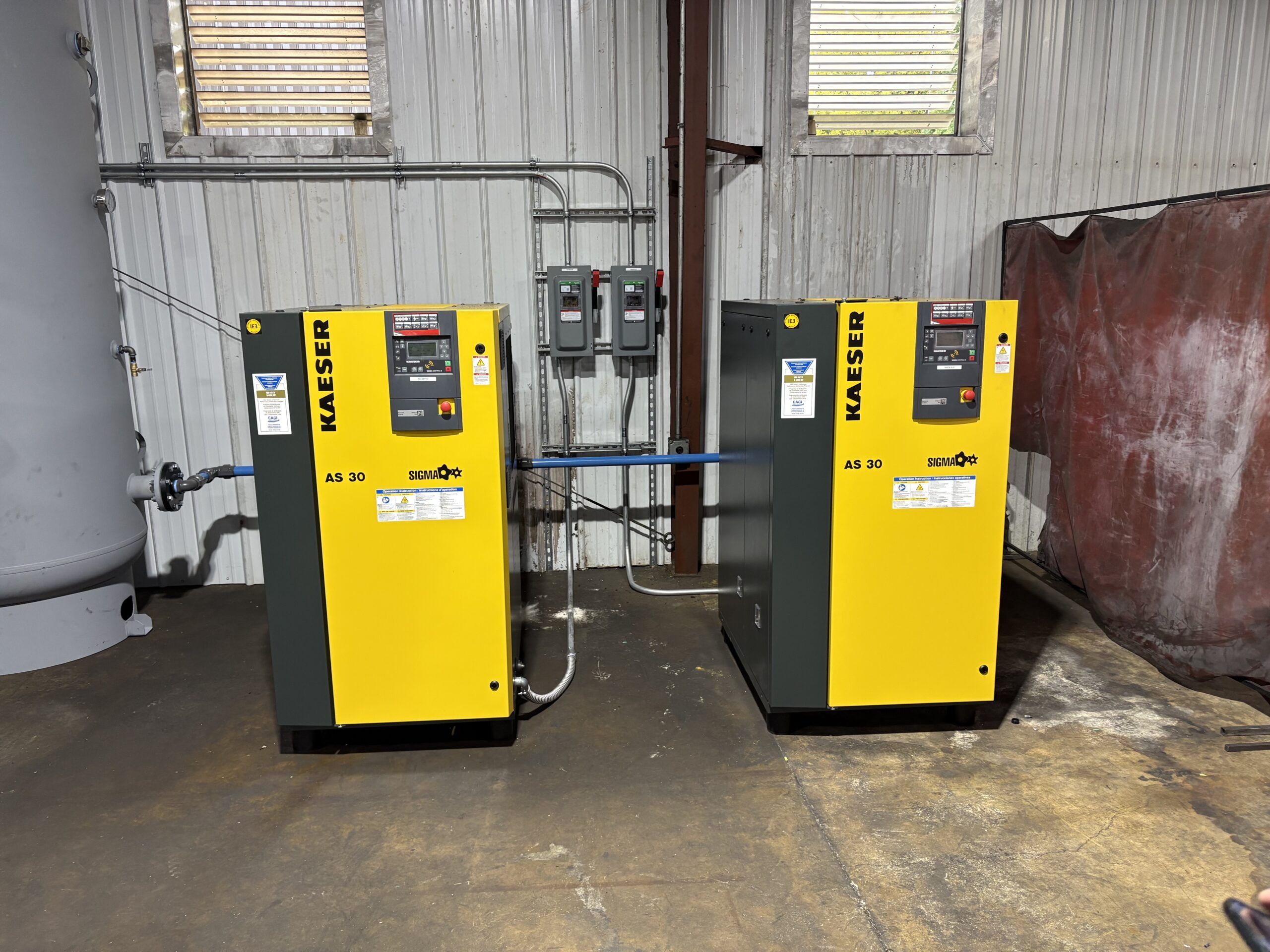 After evaluating their application, usage, and capacity needs, our team installed two new Kaeser 30 HP air compressors, replacing the outdated unit entirely.